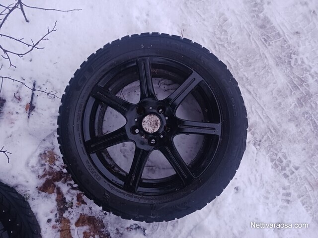 Renkailla ajettu yksi vajaa talvi ja on hyvin pintaa ja nastoja, vanteet vanhemmat.